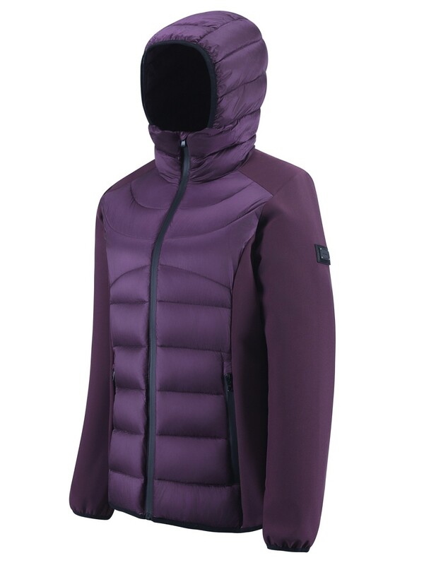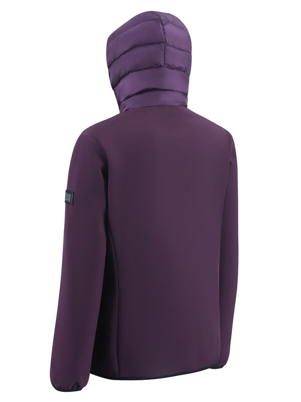 Рукава и боковые части выполнены из эластичного материала софтшелл, который защищает от ветра, хорошо тянется и обеспечивает свободу движения. Благодаря этому куртка удобно сидит по фигуре и подходит как для активного образа жизни, так и для повседневной носки.