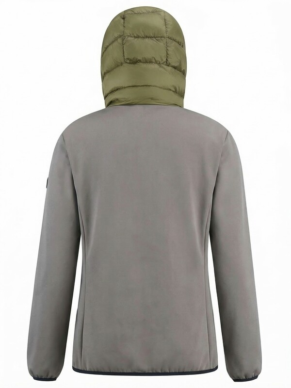 Рукава и боковые части выполнены из эластичного материала софтшелл, который защищает от ветра, хорошо тянется и обеспечивает свободу движения. Благодаря этому куртка удобно сидит по фигуре и подходит как для активного образа жизни, так и для повседневной носки.
