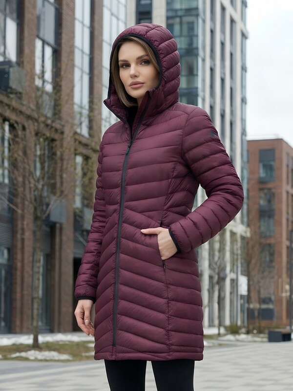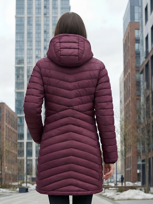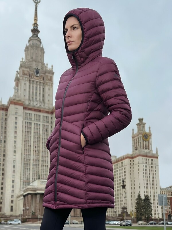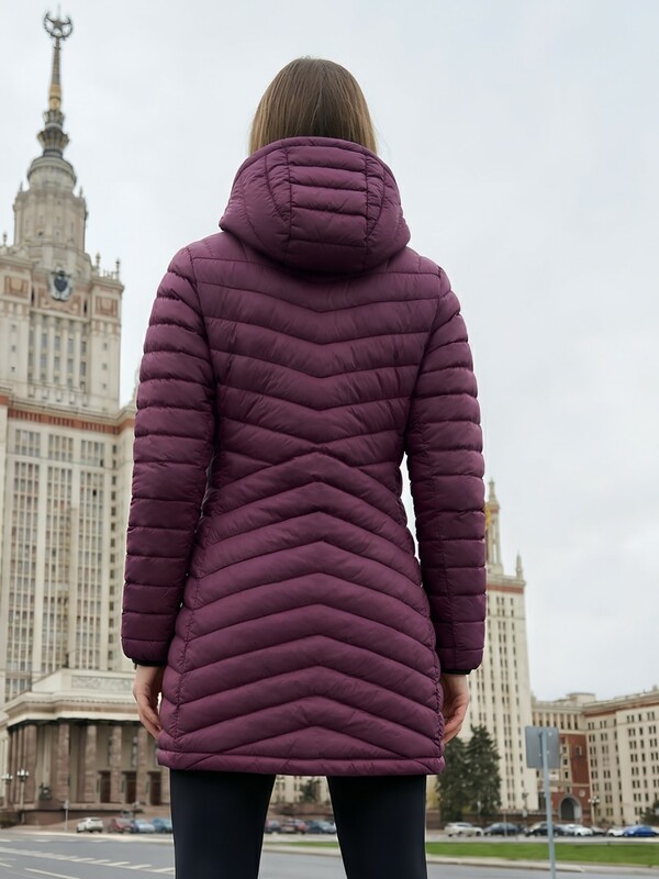 Удлинённый силуэт делает модель ещё более практичной — он защищает от ветра и создаёт ощущение дополнительного уюта. Капюшон помогает сохранить тепло и защищает от непогоды, делая куртку удобной для ежедневной носки.