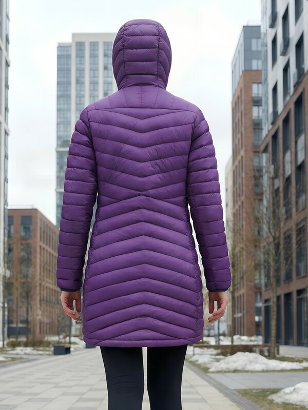 Удлинённый силуэт делает модель ещё более практичной — он защищает от ветра и создаёт ощущение дополнительного уюта. Капюшон помогает сохранить тепло и защищает от непогоды, делая куртку удобной для ежедневной носки.