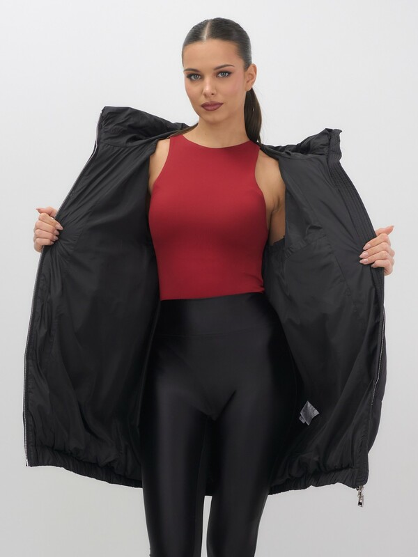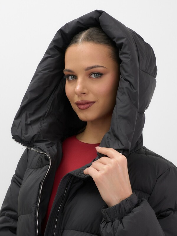 Дополнительные преимущества включают внутренние карманы для удобства, а также дышащий и гипоаллергенный материал, который не вызывает дискомфорта. Съемный воротник и фиксатор на капюшоне добавляют модели элегантности и функциональности.