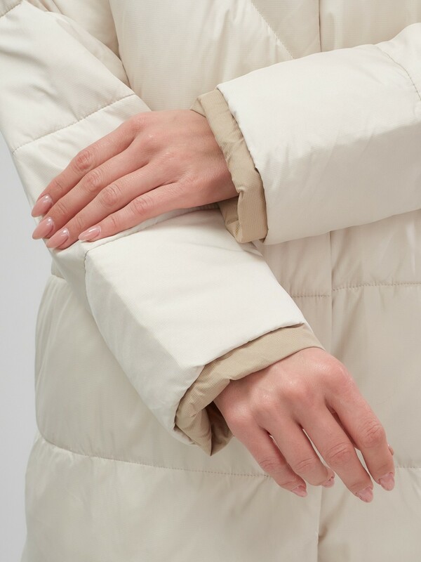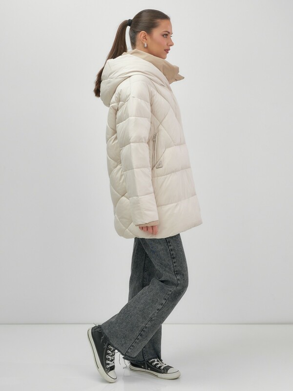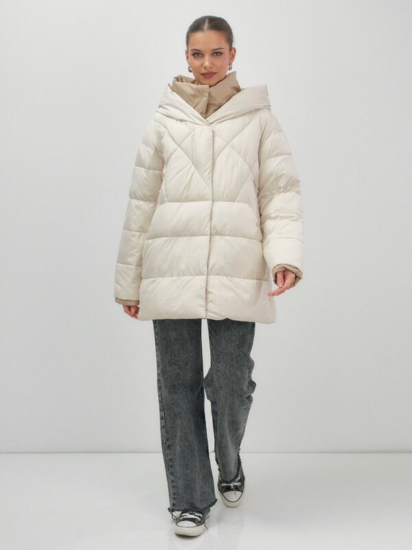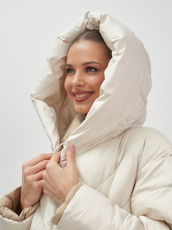 Куртка женская зимняя с капюшоном большого размера бежевого цвета 1170B