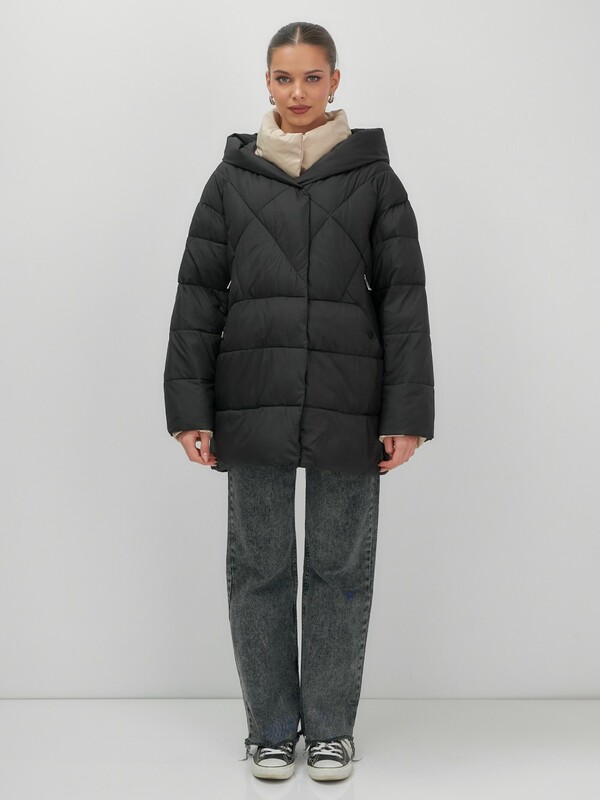 Куртка женская зимняя с капюшоном большого размера черного цвета 1170Ch