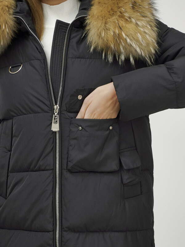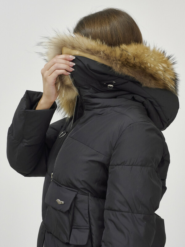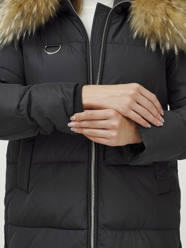 - Несъемный капюшон с натуральной съемной опушкой добавляет изысканности и защищает от непогоды. Мех енота добавляет шик и блеск вашему образу.