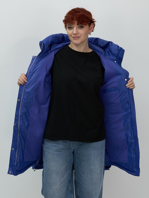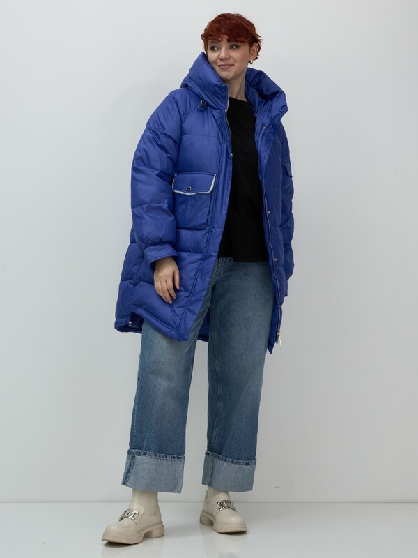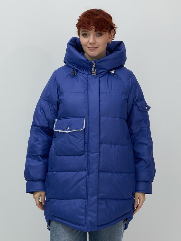 Главная страница - Каталог - Женская одежда оптом - Женская верхняя одежда - Женская верхняя одежда осень-зима - Куртка зимняя женская с капюшоном модная синего цвета 7341S