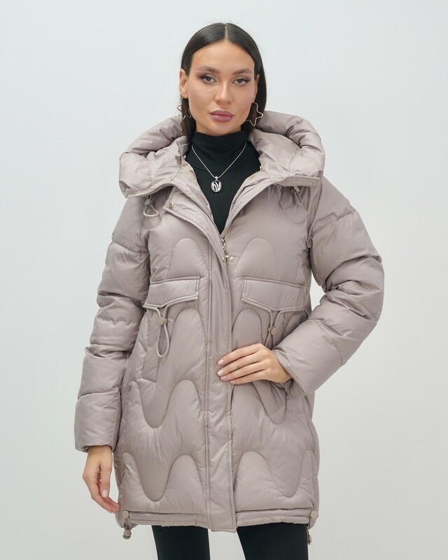 Куртка зимняя женская с капюшоном модная светло-коричневого цвета 7653SK