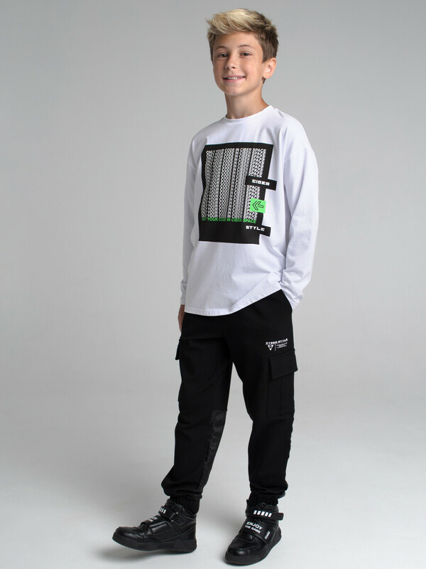 Лонгслив из качественного и приятного на ощупь трикотажа джерси. Высокое содержание хлопка 95%. Благодаря наличию эластана в составе ткани, изделие проще в уходе и держит форму. Принт сохраняет первоначальный вид даже после многочисленных стирок.