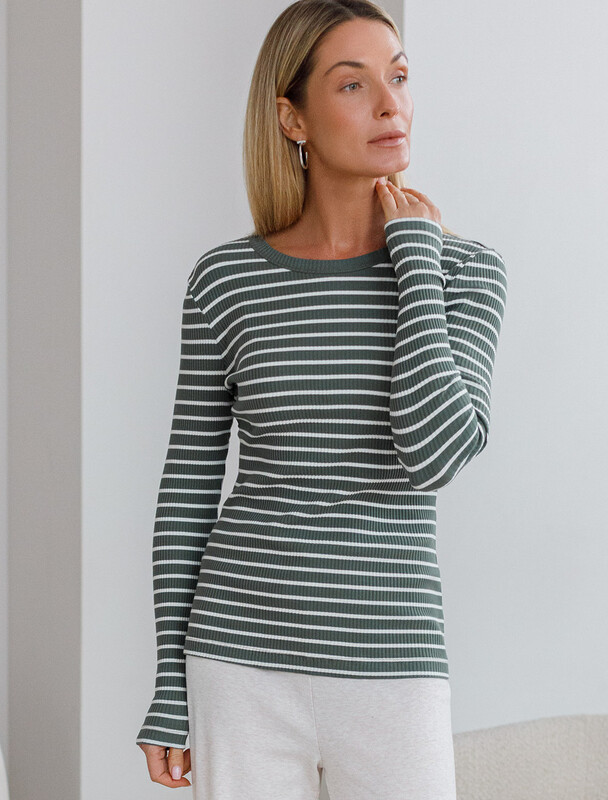 Лонгслив с узким рукавом выполнен из трикотажа в широкий рубчик. Мягкий и эластичный трикотаж безупречно держит форму и комфортно сидит по фигуре, не сковывая движения. Модель дополнена металлическим логотипом бренда.