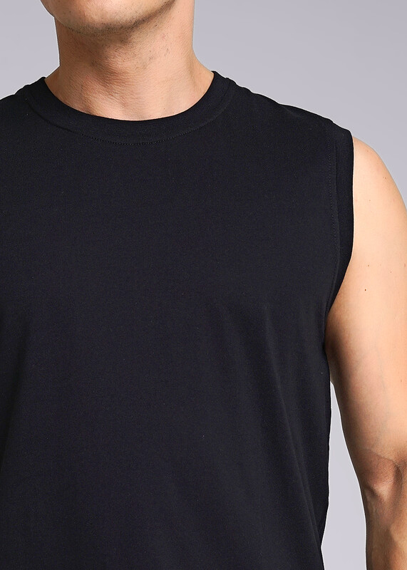 Майка с широким плечом, круглым вырезом горловины, свободного кроя. С окантовкой из рибаны по горловине и рукаву. Плотность:145-150 гр/м2