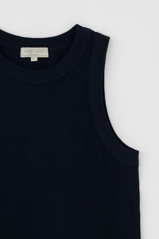 Классическим элементом гардероба является базовый топ в рубчик. Бретели стандартной ширины, круглый вырез и добавление эластана делают изделие комфортным в носке и универсальным в повседневной жизни. Синий цвет позволяет выбирать его в качестве базы под любой образ.
