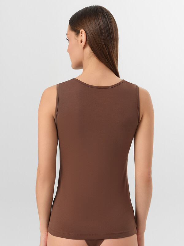Универсальный коричневый оттенок делает майку практичным решением для носки под блузы, облегающие платья и легкие топы. Эластичный материал сохраняет форму после многократных стирок, не растягиваясь и не теряя мягкости. Аккуратная обработка швов предотвращает натирание и обеспечивает идеальную посадку.