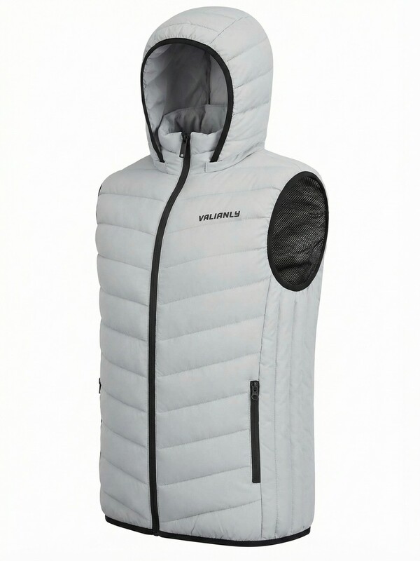 Главная страница - Каталог - Мужская одежда - Мужская верхняя одежда - Мужская верхняя одежда весна-осень - Мужской лёгкий стёганый жилет Valianly с капюшоном серого цвета 9635_1Sr