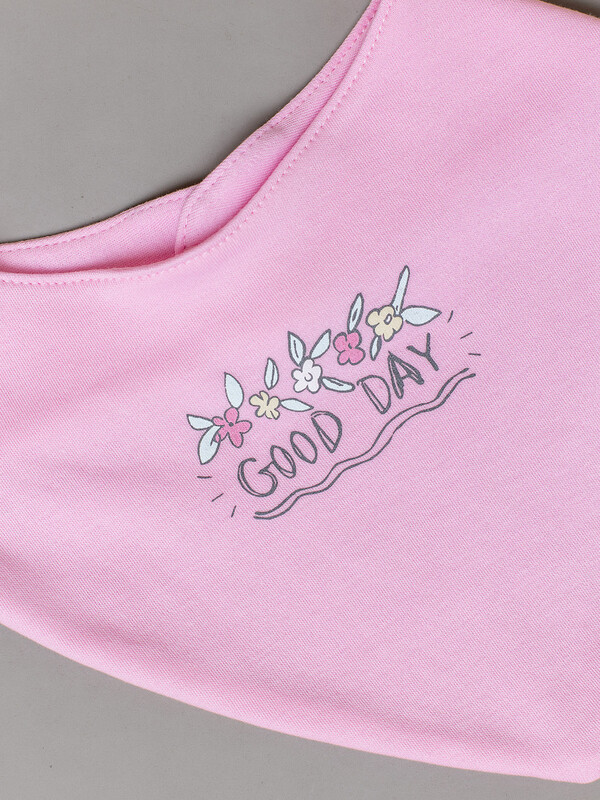 Нагрудный фартук слюнявчик для новорожденных розовый с принтом в виде цветочной надписи. Незаменимый аксессуар в период введения прикорма и прорезывания зубов. Нагрудник для кормления не только оберегает одежду от загрязнений, но и позволяет своевременно протирать личико малыша во время приема пищи.Характеристики:Ткань: Интерлок, 100% хлопокПроизводитель: batik