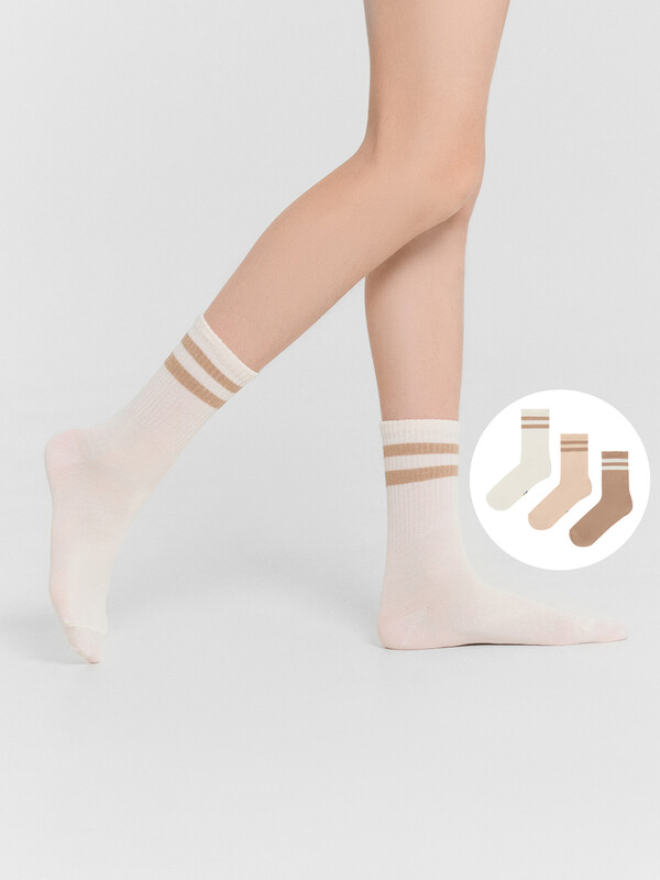 Носки детские из высококачественного хлопка с высокой резинкой и рисунком в виде поперечных полосок мультипак (3 пары). Натуральные волокна отлично пропускают воздух и впитывают влагу, дарят ощущение комфорта в течение дня. Благодаря небольшому количеству эластана в составе, носки удобно сидят на ножке и не сползают, хорошо тянутся и легко надеваются. Пятка и мысок дополнительно укреплены для защиты от протирания. Резинка мягко, но надежно удерживает носки, не оставляя на коже следов. Этот набор детских носков точно понравится вашей маленькой моднице. Рекомендуем!