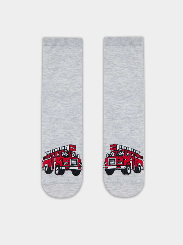 рис.3071 Детские классические носки с рисунком в виде пожарной машины.