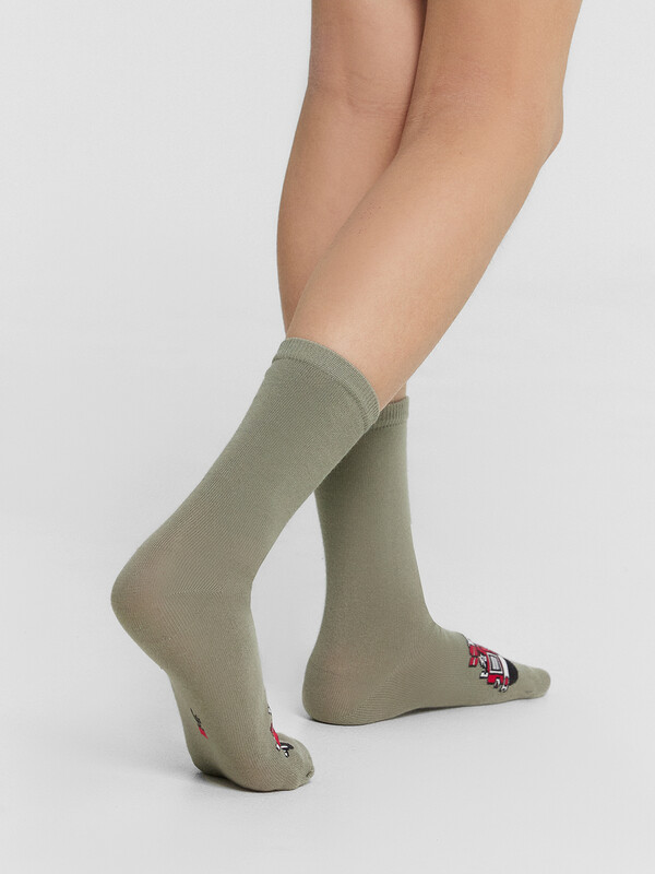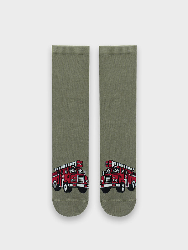 рис.3071 Детские классические носки с рисунком в виде пожарной машины.