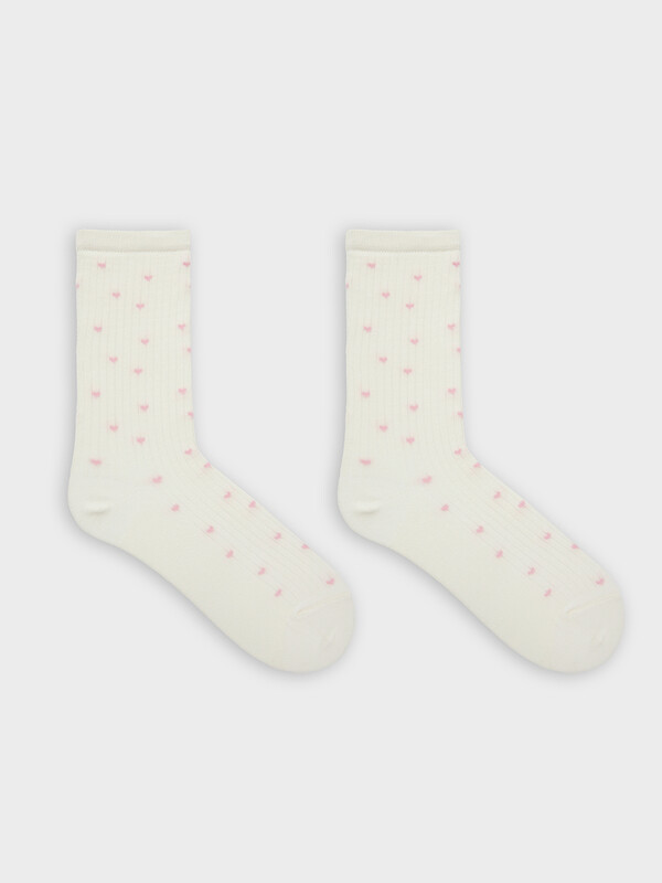 рис.3165 Детские классические носки выполненных перекидным переплетением (лапша) с рисунком в виде мелких сердечек.