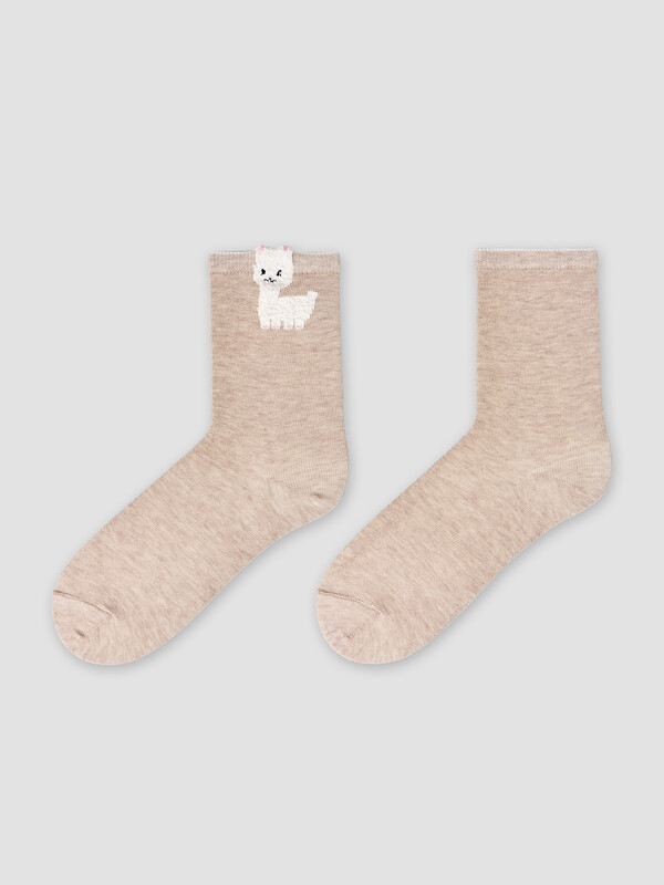 рис.3377 Детские классические носки с рисунком в виде ламы и элементом пикота на бортике.