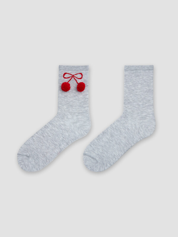 рис.3536 Детские классические носки с рисунком в виде бантика с пришивными ПОМПОНАМИ.