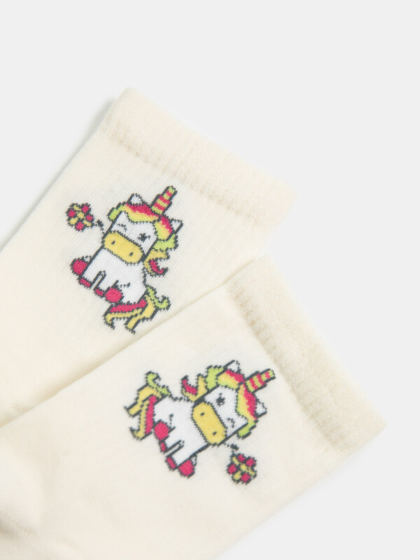 рис.2380 Детский носок с высоким плотным бортом и рисунком в виде единорога