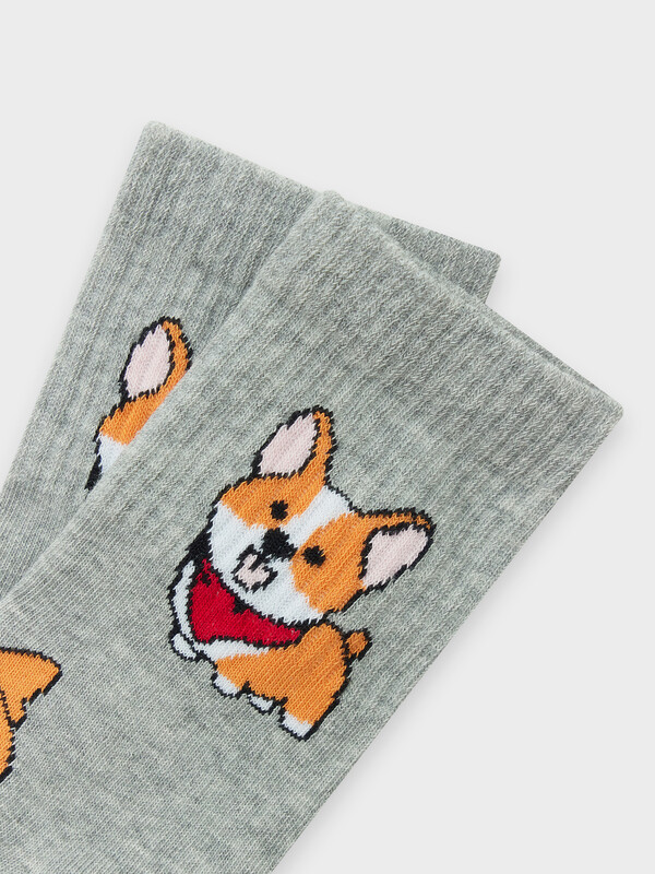 рис.2823 Детский носок с высоким плотным бортом и рисунком в виде корги.