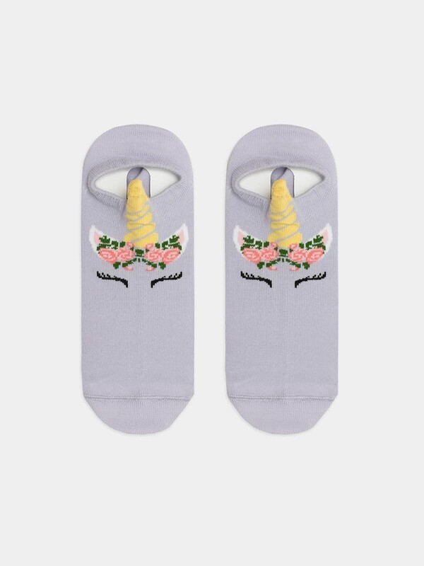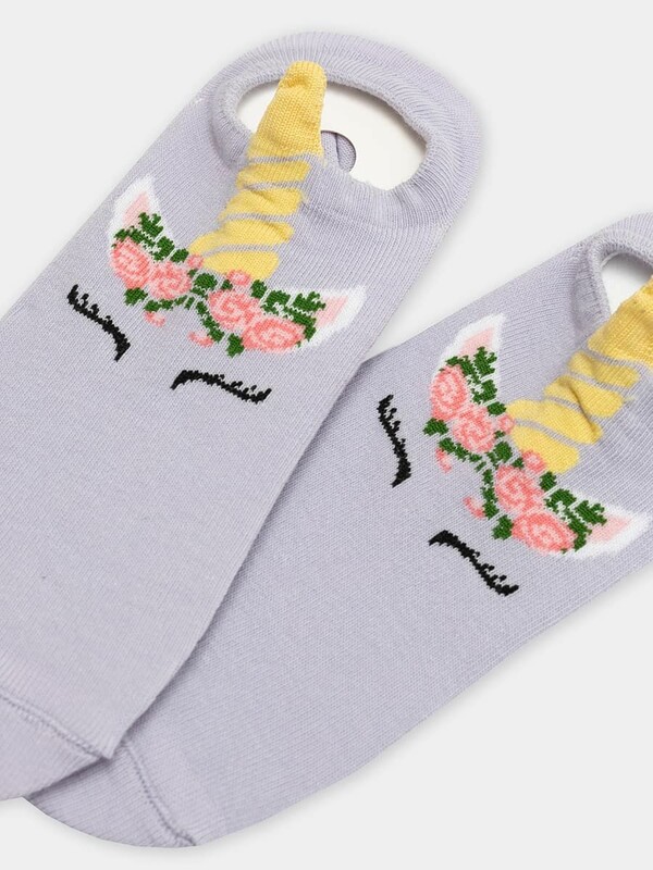 рис.1942 Детский носок гладкий суперкороткий с рисунком в виде единорога и3-д рисунком.
