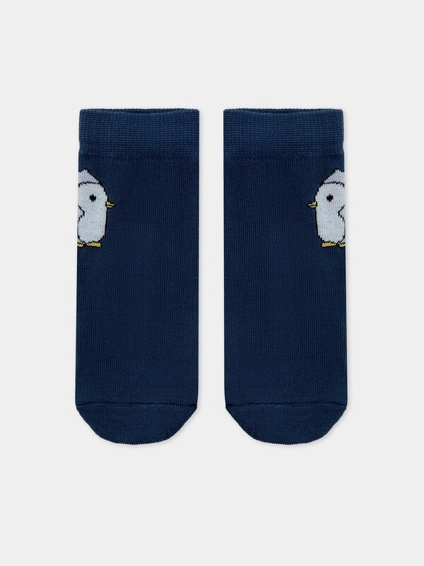 рис.2462 Детский классический носок с плюшевым следом и рисунком в виде пингвинчика.