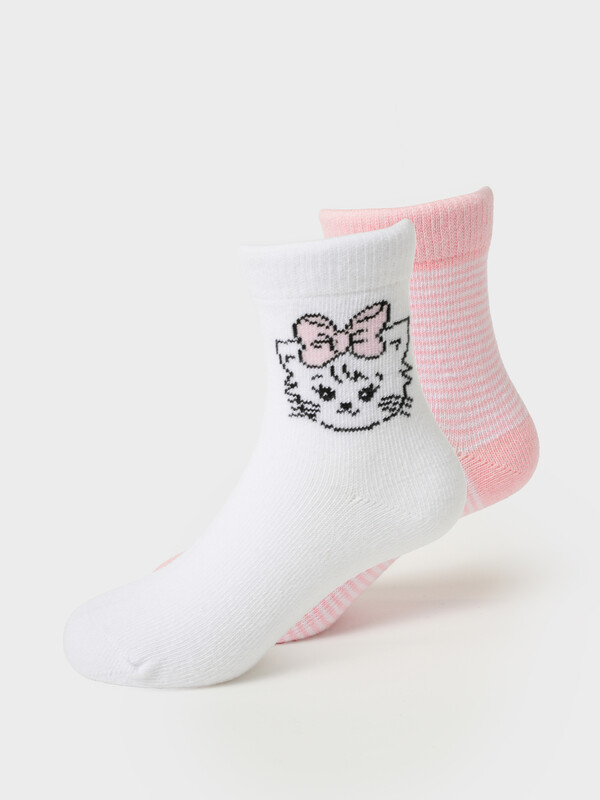 Носки детские трикотажные для девочек, 2 пары в комплекте (22-24, белый,светло-розовый)(PlayToday)