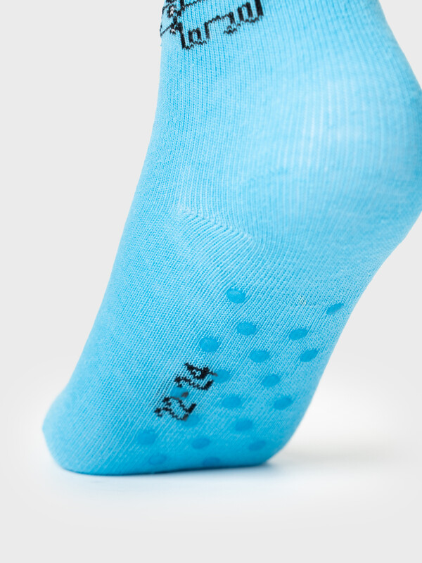 Набор детских носков для мальчика. В комплект входят три пары детских носков. Каждая пара выполнена в разном дизайне: однотонная с рисунком собаки и две в полоску с разными цветами. Все носки оснащены силиконовыми противоскользящими стопперами на подошве. Манжеты мягкие и эластичные, хорошо удерживают носок на ноге. Материал — мягкий хлопковый трикотаж.