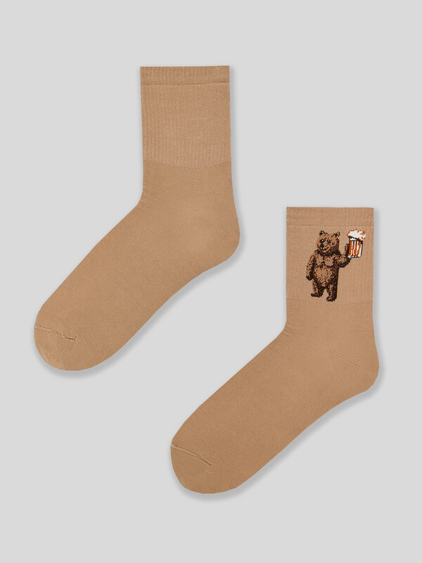 Рис.3554 Носки мужские, средней длины с резинкой на поголенке и рисунком в виде медведя с бокалом.