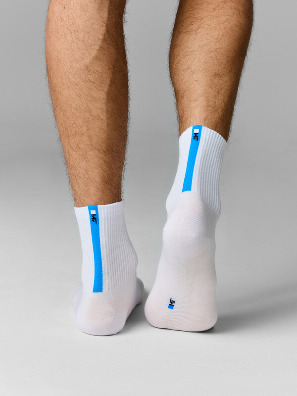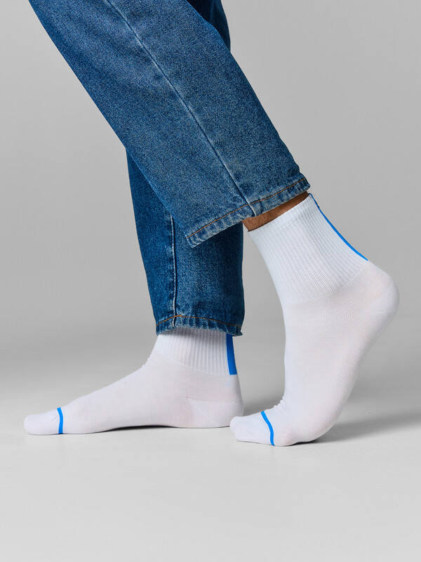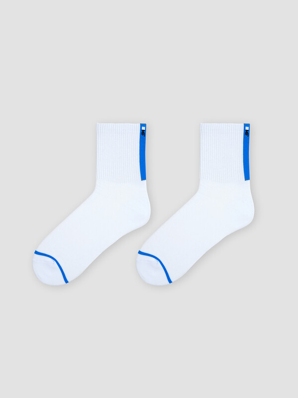 Рис.3581 Носки мужские, средней длины с резинкой на поголенке и рисунком в виде вертикальной полоски с логотипом со стороны пятки.