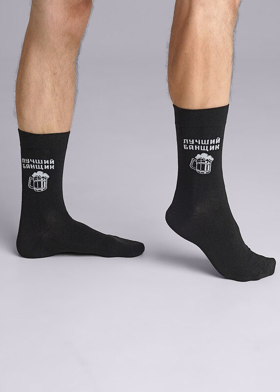 Носок мужской с рисунком и надписью на паголенке ЛУЧШИЙ БАНЩИК