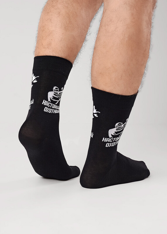 Мужские носки с рисунком и надписью ""Настоящий охотник"".