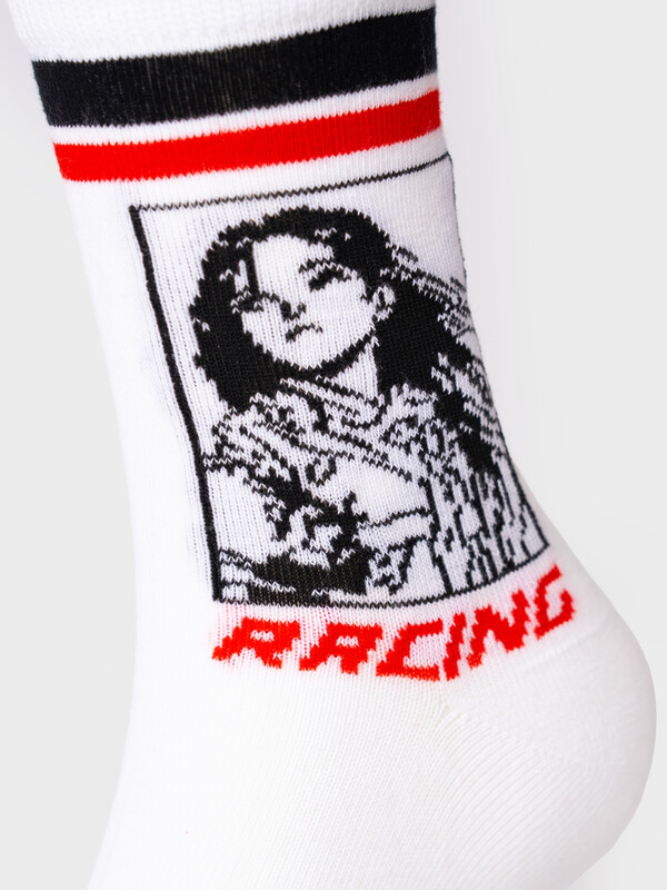 Набор из двух пар носков для девочки подростка. Дизайн выполнен в гоночной тематике. Носки выполнены из мягкого хлопкового трикотажа, хорошо тянутся и комфортно сидят на ноге благодаря эластичной резинке в верхней части. Усиленные мысок и пятка.