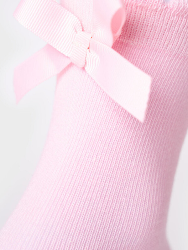 Набор из двух пар детских носков для девочки. В комплект входят носки двух расцветок: одна пара выполнена в нежном розовом цвете, вторая — белая с акцентами. Декорированы бантами. Носки выполнены из мягкого хлопкового трикотажа, хорошо тянутся и комфортно сидят на ноге благодаря эластичной резинке в верхней части. Усиленные мысок и пятка.