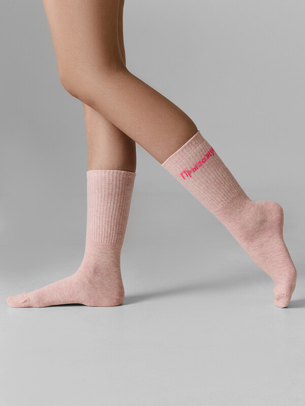 Женские носки высокие с очаровательной надписью «Прыгажуня» — это нежный аксессуар, который подчеркнет вашу индивидуальность и подарит хорошее настроение. Носки выполнены из комбинированных материалов, которые обеспечивают мягкость, воздухопроницаемость и идеальную посадку. Хлопок дарит коже комфорт, полиамид повышает износостойкость, а эластан гарантирует, что носки не сползут и не потеряют форму.