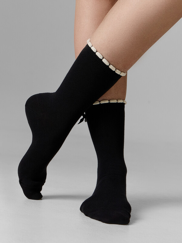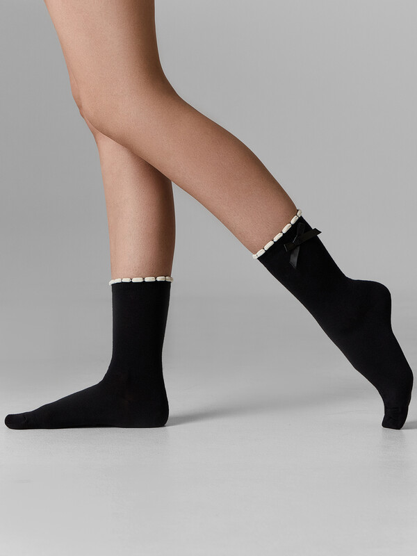 рис.3566 Женские классические носки с пикотом и пришивным бантиком.