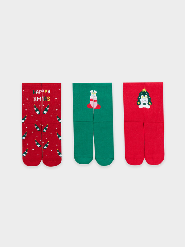 рис.2969 Мультипак из 3-х пар классических женских носков с высоким плотным бортом и новогодними рисунками. Составляющие: 287A-2970, 287A-2971, 287A-2972