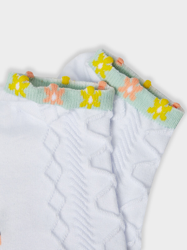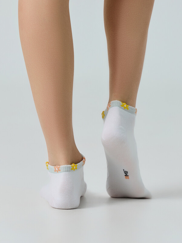 рис.3154 Женские укороченные носки, выработанные перекидным переплетением с рельефным рисунком и пикотом на бортике в виде ромашек.