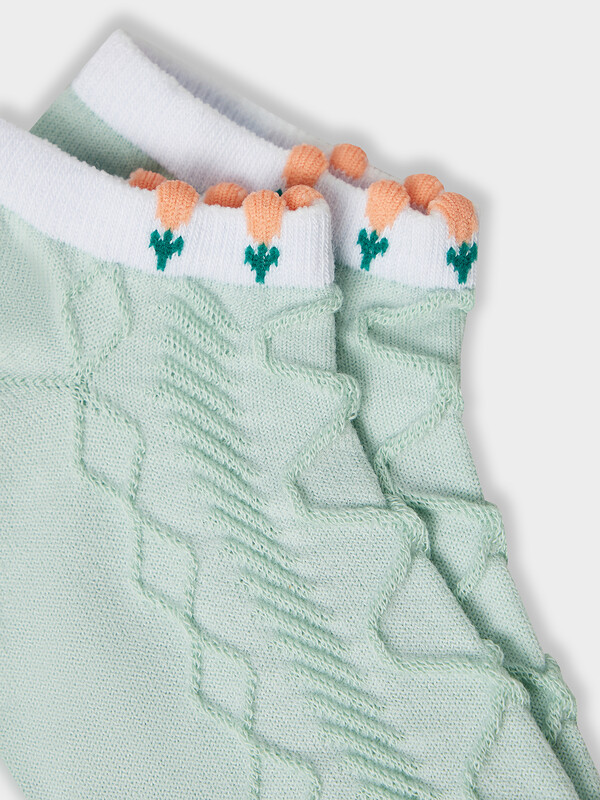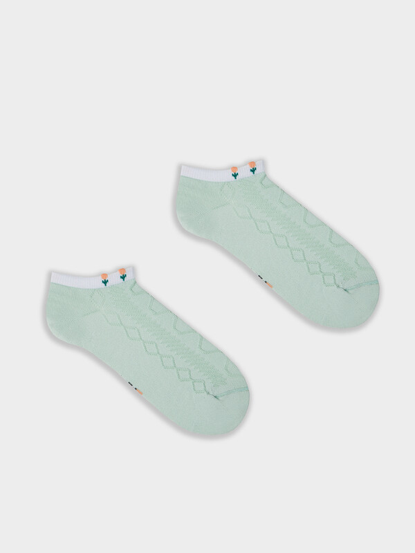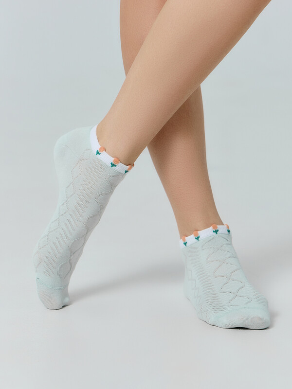 рис.3155 Женские укороченные носки, выработанные перекидным переплетением с рельефным рисунком и пикотом на бортике в виде тюльпанчиков.