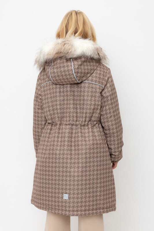 • Утяжка на капюшоне со стопперами • Отстегивающаяся опушка из искусственного меха на молнии