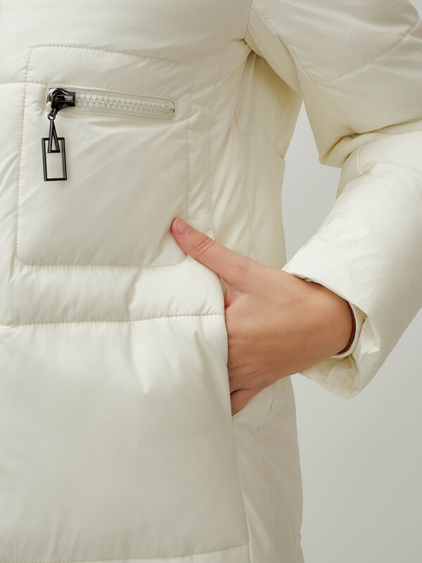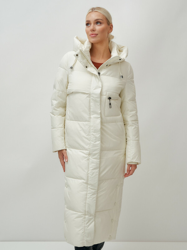 Главная страница - Каталог - Женская одежда оптом - Женская верхняя одежда - Женская верхняя одежда осень-зима - Пальто утепленное стеганное зимнее с капюшоном женское бежевого цвета 9611B