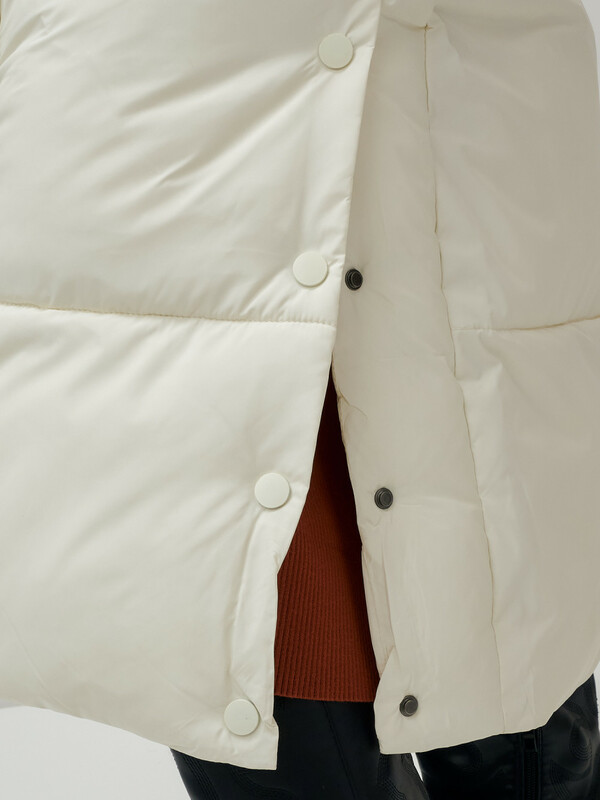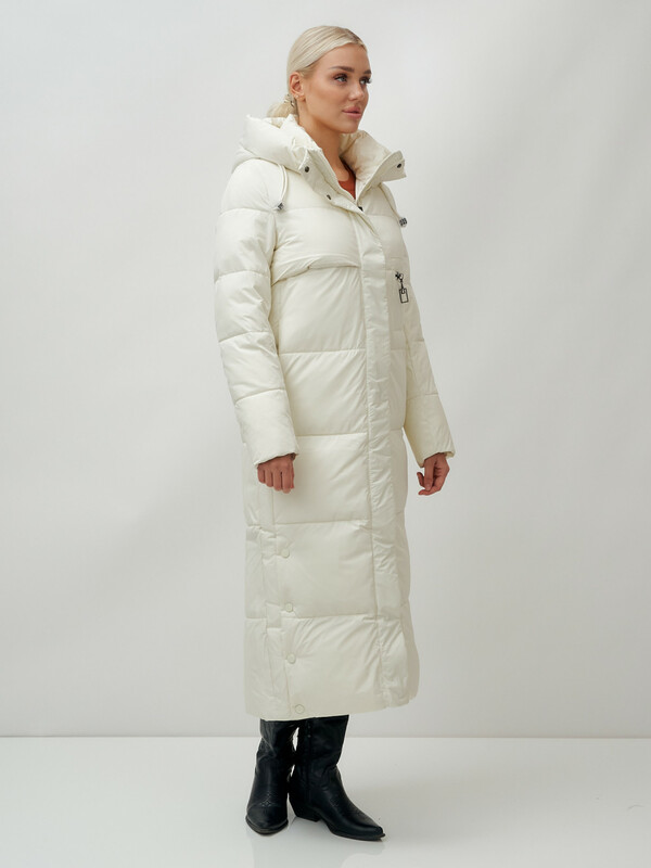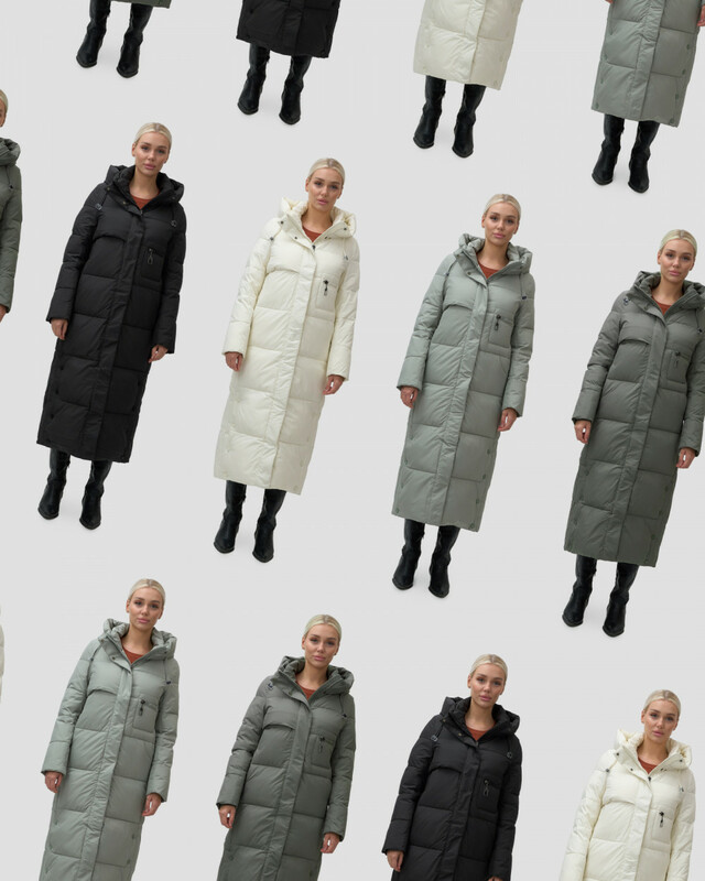 — Оно оснащено несъемным капюшоном, который защитит вас от ветра и снега, а прямые рукава с трикотажными манжетами плотно прилегают и сохраняют тепло внутри.