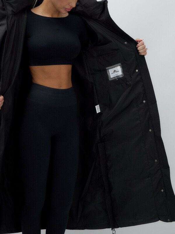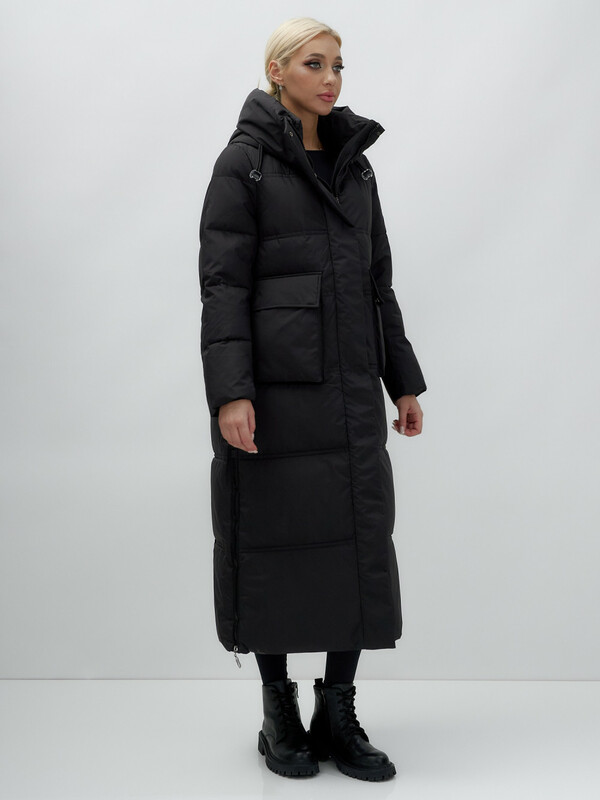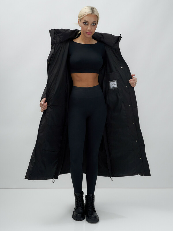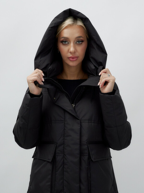 Главная страница - Каталог - Женская одежда оптом - Женская верхняя одежда - Женская верхняя одежда осень-зима - Пальто утепленное стеганное зимнее с капюшоном женское черного цвета 9602Ch