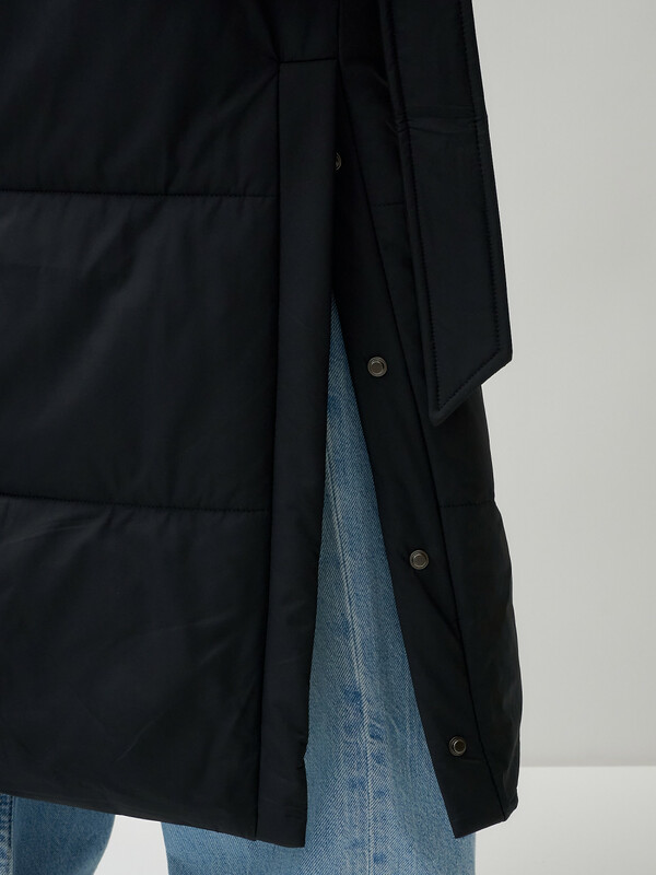 — Прошитый стеганый утеплитель делает пальто не только стильным, но и невероятно теплым. Расположенный единым полотном утеплитель  гарантирует долговечность изделия, отлично справляется с многочисленными стирками.