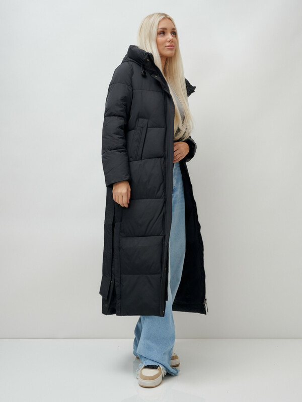 Главная страница - Каталог - Женская одежда оптом - Женская верхняя одежда - Женская верхняя одежда осень-зима - Пальто утепленное стеганное зимнее с капюшоном женское черного цвета 9605Ch