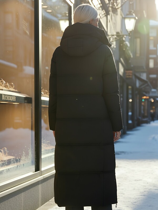 — Длина ниже колена: идеально защищает от холода, делая акцент на элегантности.