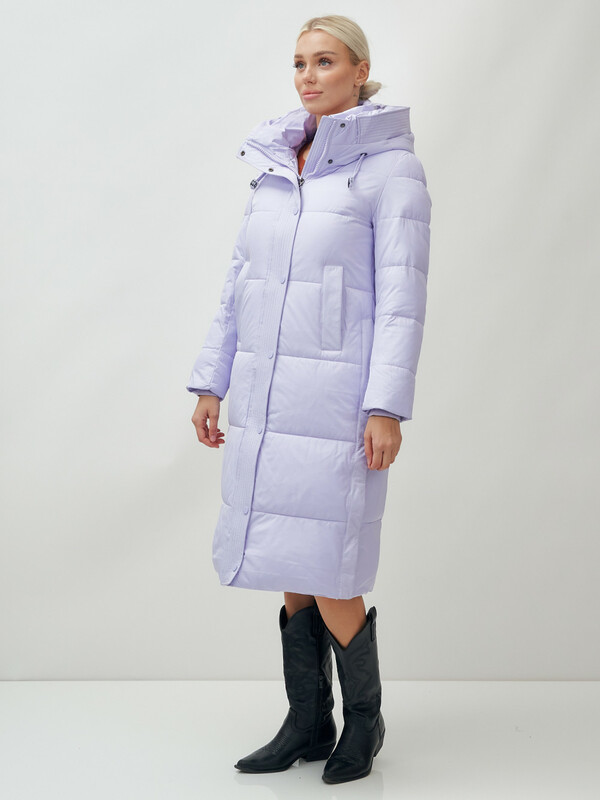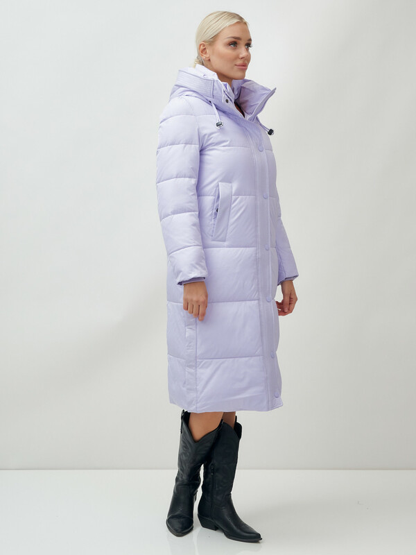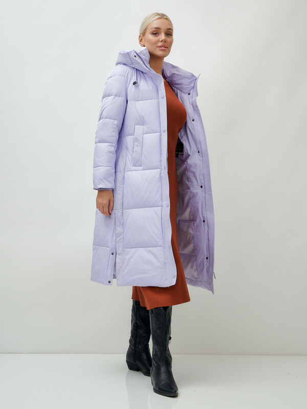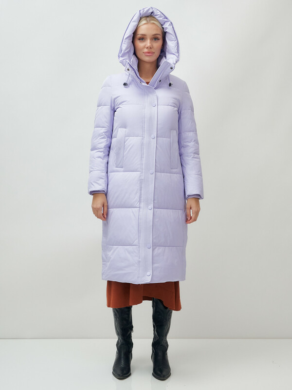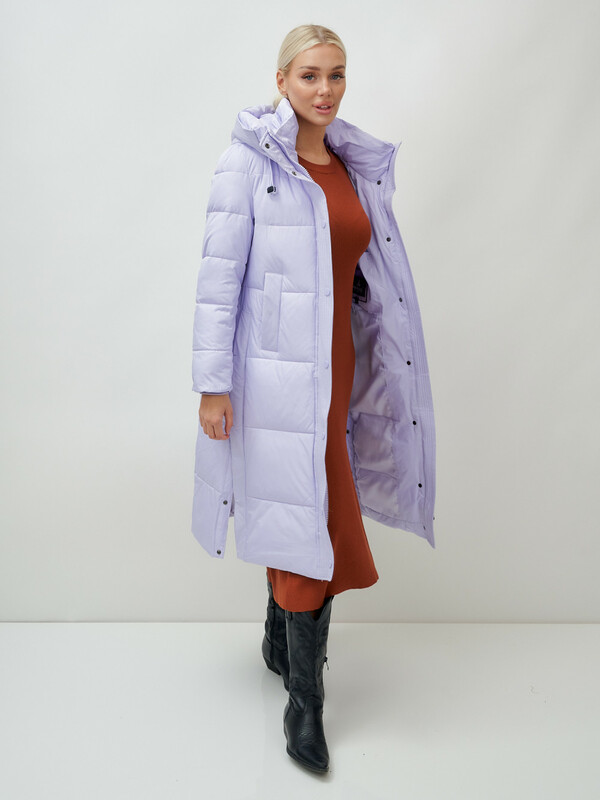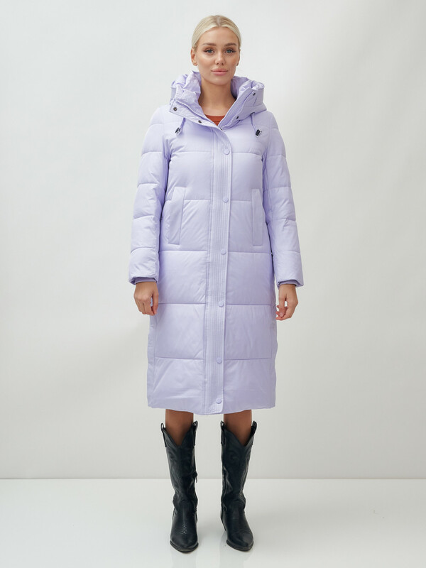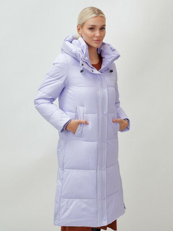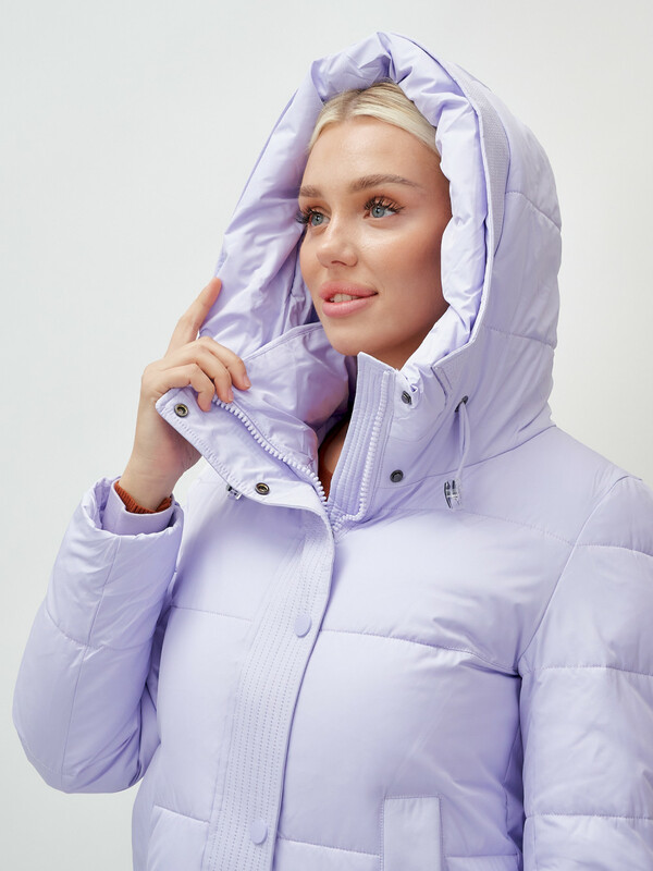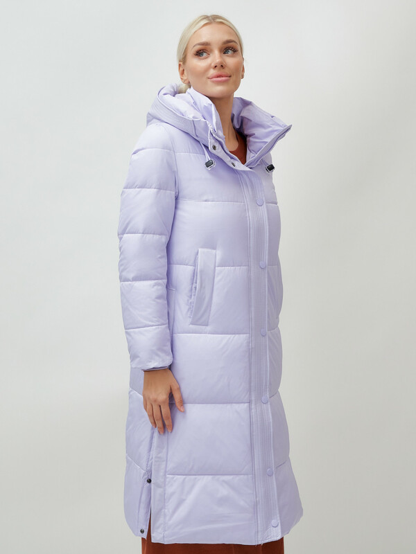 Главная страница - Каталог - Женская одежда оптом - Женская верхняя одежда - Женская верхняя одежда осень-зима - Пальто утепленное стеганное зимнее с капюшоном женское фиолетового цвета 9601F