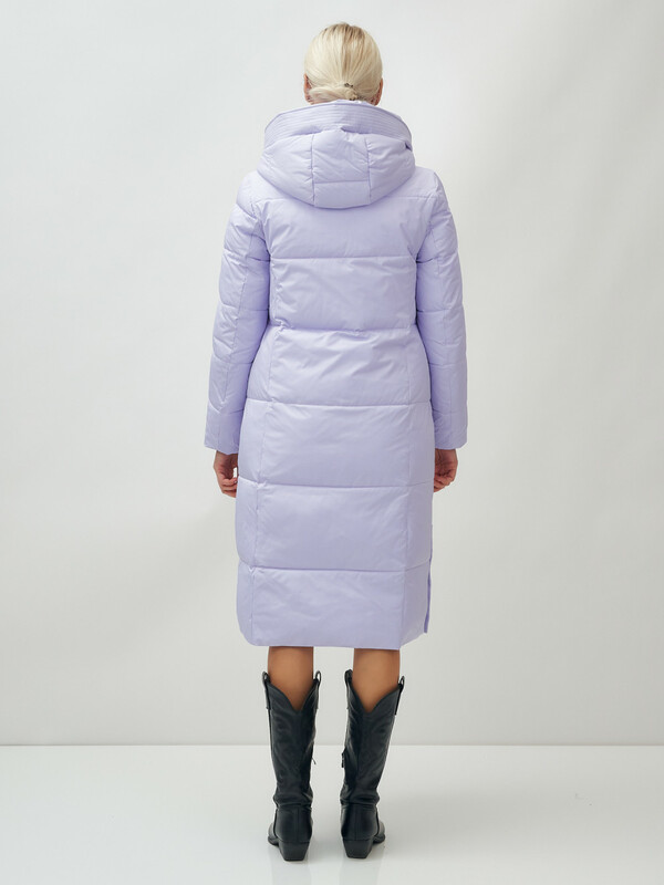 Пальто утепленное стеганное зимнее с капюшоном женское фиолетового цвета 9601F