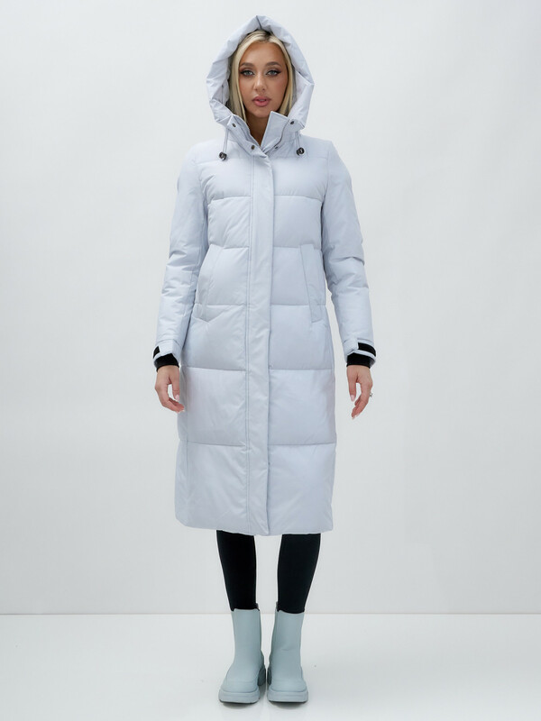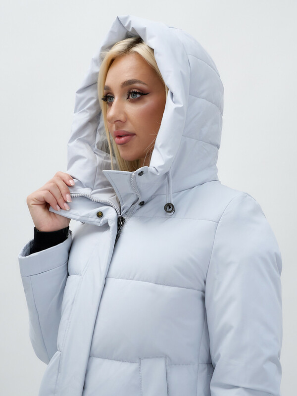 Главная страница - Каталог - Женская одежда оптом - Женская верхняя одежда - Женская верхняя одежда осень-зима - Пальто утепленное стеганное зимнее с капюшоном женское светло-серого цвета 9615SS